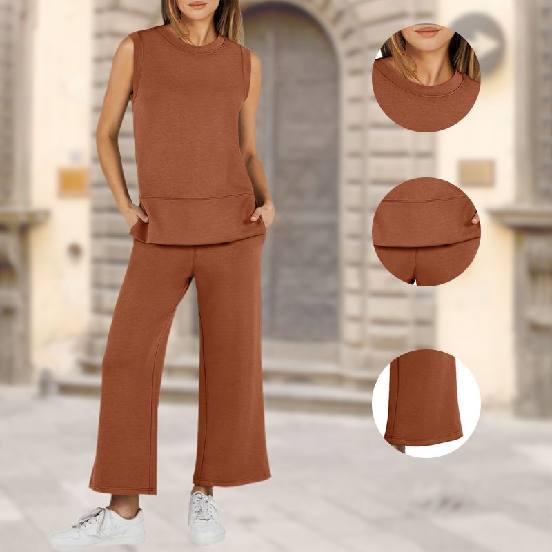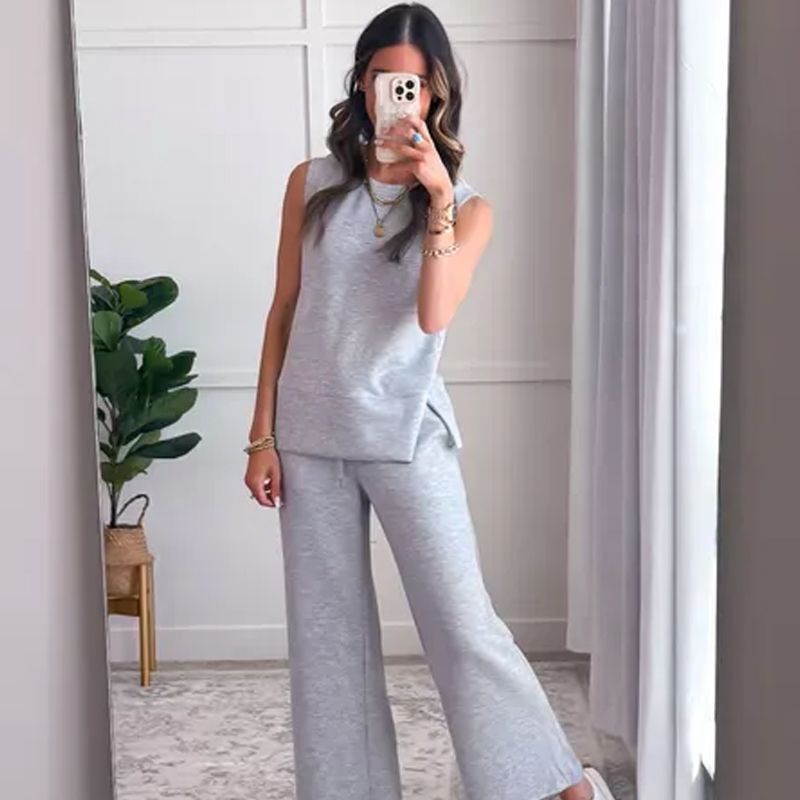 1 * Women’s Sleeveless Slit Hem Wide-leg Casual 2-piece Set