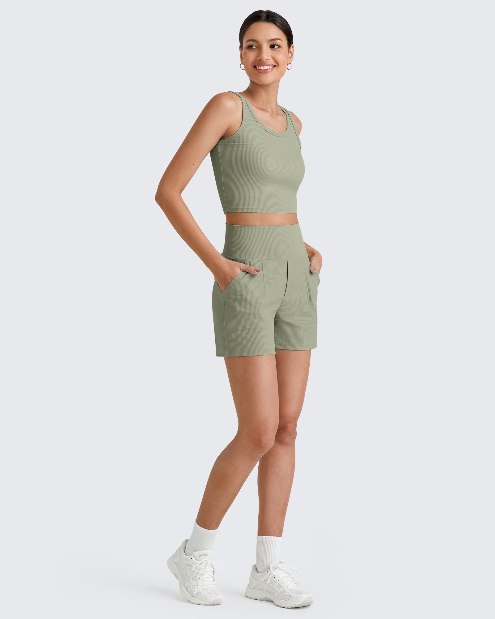 Dress it up. Dress it down. With a flattering high-rise waist and ribbed texture, offering a tailored look with the perfect amount of stretch.