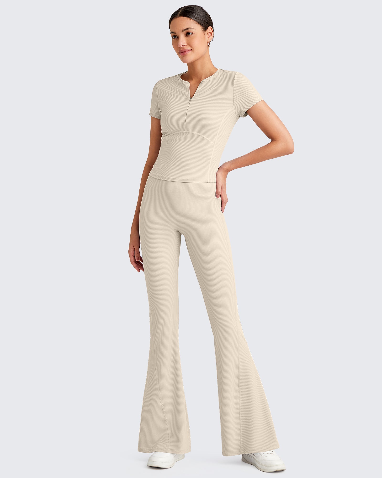 - Pocketless design: The flare pants design has no-pockets, which are more concise and light, and achieve a zero-weight drape.