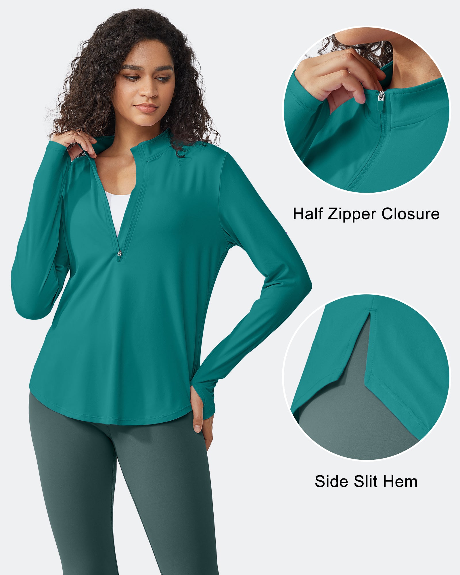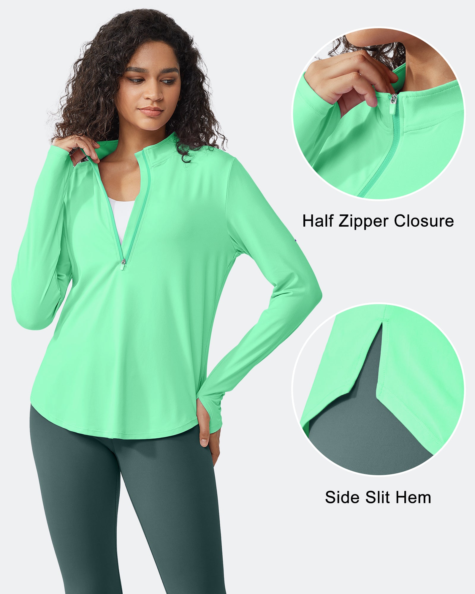 Sun-smart. Sweat-ready.With a high neckline, breathable half-zip, and quick-dry stretch fabric, this top delivers sun protection and polished performance.